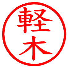 [朱肉の色]を選び、入力窓に“軽木”と入力して[生成]ボタンを押すと、印影が更新され、リンクから電子印鑑(デジタル印影)がダウンロードできます。 電子印鑑「軽木」の作り方文字表示が変なときや、文字バランスが悪いときは[字形切替]のチェックボックスでON/OFFを切り替え[生成]しなおしてください。 生成される画像は通常の印影「軽木.png」と、にじみを表現した少し太めの印影「軽木B.png」の背面透過PNG形式2種と、鮮明なPDF形式の印影「軽木.pdf」の計3種類です。 朱肉の微妙な色の違いを7色で表現しました。デフォルト(左端)は、JISが定めた朱肉の色のマンセル値(7.5R 5/14)をRGB値(217,66,54)に変換したものになっています。 「電子透かし」にチェックを入れて[生成]ボタンを押すと、タイムスタンプを電子透かしとして埋め込んだセキュアな電子印鑑が作れます。詳細は別ページの「タイムスタンプと電子透かし」でご覧ください。 軽木さんの日付印が作れます。「日付スタンプメーカー」は、社内向けの書類に利用されることの多い日付印(データ印)が無料で作れるWebアプリケーションです。中段に日付が入り、上段と下段は、ともに8文字まで文字が入ります。 ![]() 古代文字で落款印が作れます。「落款スタンプメーカー」で作品を引き立たせる落款印が作れます。