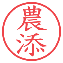 [朱肉の色]を選び、入力窓に“農添”と入力して[生成]ボタンを押すと、印影が更新され、リンクから電子印鑑(デジタル印影)がダウンロードできます。 電子印鑑「農添」の作り方文字表示が変なときや、文字バランスが悪いときは[字形切替]のチェックボックスでON/OFFを切り替え[生成]しなおしてください。 生成される画像は通常の印影「農添.png」と、にじみを表現した少し太めの印影「農添B.png」の背面透過PNG形式2種と、鮮明なPDF形式の印影「農添.pdf」の計3種類です。 朱肉の微妙な色の違いを7色で表現しました。デフォルト(左端)は、JISが定めた朱肉の色のマンセル値(7.5R 5/14)をRGB値(217,66,54)に変換したものになっています。 「電子透かし」にチェックを入れて[生成]ボタンを押すと、タイムスタンプを電子透かしとして埋め込んだセキュアな電子印鑑が作れます。詳細は別ページの「タイムスタンプと電子透かし」でご覧ください。 農添さんの日付印が作れます。「日付スタンプメーカー」は、社内向けの書類に利用されることの多い日付印(データ印)が無料で作れるWebアプリケーションです。中段に日付が入り、上段と下段は、ともに8文字まで文字が入ります。 ![]() 古代文字で落款印が作れます。「落款スタンプメーカー」で作品を引き立たせる落款印が作れます。