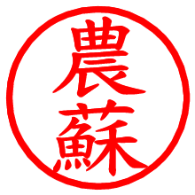 [朱肉の色]を選び、入力窓に“農蘇”と入力して[生成]ボタンを押すと、印影が更新され、リンクから電子印鑑(デジタル印影)がダウンロードできます。 電子印鑑「農蘇」の作り方文字表示が変なときや、文字バランスが悪いときは[字形切替]のチェックボックスでON/OFFを切り替え[生成]しなおしてください。 生成される画像は通常の印影「農蘇.png」と、にじみを表現した少し太めの印影「農蘇B.png」の背面透過PNG形式2種と、鮮明なPDF形式の印影「農蘇.pdf」の計3種類です。 朱肉の微妙な色の違いを7色で表現しました。デフォルト(左端)は、JISが定めた朱肉の色のマンセル値(7.5R 5/14)をRGB値(217,66,54)に変換したものになっています。 「電子透かし」にチェックを入れて[生成]ボタンを押すと、タイムスタンプを電子透かしとして埋め込んだセキュアな電子印鑑が作れます。詳細は別ページの「タイムスタンプと電子透かし」でご覧ください。 農蘇さんの日付印が作れます。「日付スタンプメーカー」は、社内向けの書類に利用されることの多い日付印(データ印)が無料で作れるWebアプリケーションです。中段に日付が入り、上段と下段は、ともに8文字まで文字が入ります。 ![]() 古代文字で落款印が作れます。「落款スタンプメーカー」で作品を引き立たせる落款印が作れます。