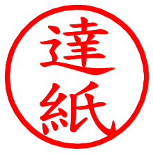 [朱肉の色]を選び、入力窓に“達紙”と入力して[生成]ボタンを押すと、印影が更新され、リンクから電子印鑑(デジタル印影)がダウンロードできます。 電子印鑑「達紙」の作り方文字表示が変なときや、文字バランスが悪いときは[字形切替]のチェックボックスでON/OFFを切り替え[生成]しなおしてください。 生成される画像は通常の印影「達紙.png」と、にじみを表現した少し太めの印影「達紙B.png」の背面透過PNG形式2種と、鮮明なPDF形式の印影「達紙.pdf」の計3種類です。 朱肉の微妙な色の違いを7色で表現しました。デフォルト(左端)は、JISが定めた朱肉の色のマンセル値(7.5R 5/14)をRGB値(217,66,54)に変換したものになっています。 「電子透かし」にチェックを入れて[生成]ボタンを押すと、タイムスタンプを電子透かしとして埋め込んだセキュアな電子印鑑が作れます。詳細は別ページの「タイムスタンプと電子透かし」でご覧ください。 達紙さんの日付印が作れます。「日付スタンプメーカー」は、社内向けの書類に利用されることの多い日付印(データ印)が無料で作れるWebアプリケーションです。中段に日付が入り、上段と下段は、ともに8文字まで文字が入ります。 ![]() 古代文字で落款印が作れます。「落款スタンプメーカー」で作品を引き立たせる落款印が作れます。