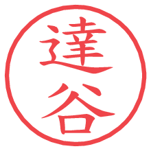 [朱肉の色]を選び、入力窓に“達谷”と入力して[生成]ボタンを押すと、印影が更新され、リンクから電子印鑑(デジタル印影)がダウンロードできます。 電子印鑑「達谷」の作り方文字表示が変なときや、文字バランスが悪いときは[字形切替]のチェックボックスでON/OFFを切り替え[生成]しなおしてください。 生成される画像は通常の印影「達谷.png」と、にじみを表現した少し太めの印影「達谷B.png」の背面透過PNG形式2種と、鮮明なPDF形式の印影「達谷.pdf」の計3種類です。 朱肉の微妙な色の違いを7色で表現しました。デフォルト(左端)は、JISが定めた朱肉の色のマンセル値(7.5R 5/14)をRGB値(217,66,54)に変換したものになっています。 「電子透かし」にチェックを入れて[生成]ボタンを押すと、タイムスタンプを電子透かしとして埋め込んだセキュアな電子印鑑が作れます。詳細は別ページの「タイムスタンプと電子透かし」でご覧ください。 達谷さんの日付印が作れます。「日付スタンプメーカー」は、社内向けの書類に利用されることの多い日付印(データ印)が無料で作れるWebアプリケーションです。中段に日付が入り、上段と下段は、ともに8文字まで文字が入ります。 ![]() 古代文字で落款印が作れます。「落款スタンプメーカー」で作品を引き立たせる落款印が作れます。