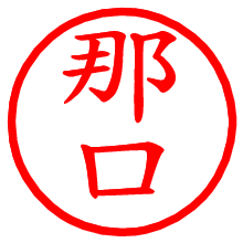 [朱肉の色]を選び、入力窓に“那口”と入力して[生成]ボタンを押すと、印影が更新され、リンクから電子印鑑(デジタル印影)がダウンロードできます。 電子印鑑「那口」の作り方文字表示が変なときや、文字バランスが悪いときは[字形切替]のチェックボックスでON/OFFを切り替え[生成]しなおしてください。 生成される画像は通常の印影「那口.png」と、にじみを表現した少し太めの印影「那口B.png」の背面透過PNG形式2種と、鮮明なPDF形式の印影「那口.pdf」の計3種類です。 朱肉の微妙な色の違いを7色で表現しました。デフォルト(左端)は、JISが定めた朱肉の色のマンセル値(7.5R 5/14)をRGB値(217,66,54)に変換したものになっています。 「電子透かし」にチェックを入れて[生成]ボタンを押すと、タイムスタンプを電子透かしとして埋め込んだセキュアな電子印鑑が作れます。詳細は別ページの「タイムスタンプと電子透かし」でご覧ください。 那口さんの日付印が作れます。「日付スタンプメーカー」は、社内向けの書類に利用されることの多い日付印(データ印)が無料で作れるWebアプリケーションです。中段に日付が入り、上段と下段は、ともに8文字まで文字が入ります。 ![]() 古代文字で落款印が作れます。「落款スタンプメーカー」で作品を引き立たせる落款印が作れます。