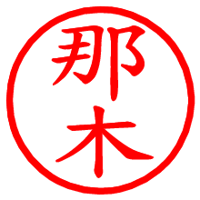 [朱肉の色]を選び、入力窓に“那木”と入力して[生成]ボタンを押すと、印影が更新され、リンクから電子印鑑(デジタル印影)がダウンロードできます。 電子印鑑「那木」の作り方文字表示が変なときや、文字バランスが悪いときは[字形切替]のチェックボックスでON/OFFを切り替え[生成]しなおしてください。 生成される画像は通常の印影「那木.png」と、にじみを表現した少し太めの印影「那木B.png」の背面透過PNG形式2種と、鮮明なPDF形式の印影「那木.pdf」の計3種類です。 朱肉の微妙な色の違いを7色で表現しました。デフォルト(左端)は、JISが定めた朱肉の色のマンセル値(7.5R 5/14)をRGB値(217,66,54)に変換したものになっています。 「電子透かし」にチェックを入れて[生成]ボタンを押すと、タイムスタンプを電子透かしとして埋め込んだセキュアな電子印鑑が作れます。詳細は別ページの「タイムスタンプと電子透かし」でご覧ください。 那木さんの日付印が作れます。「日付スタンプメーカー」は、社内向けの書類に利用されることの多い日付印(データ印)が無料で作れるWebアプリケーションです。中段に日付が入り、上段と下段は、ともに8文字まで文字が入ります。 ![]() 古代文字で落款印が作れます。「落款スタンプメーカー」で作品を引き立たせる落款印が作れます。
