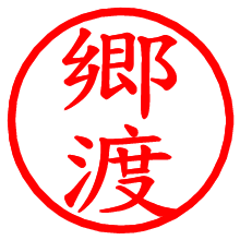 [朱肉の色]を選び、入力窓に“郷渡”と入力して[生成]ボタンを押すと、印影が更新され、リンクから電子印鑑(デジタル印影)がダウンロードできます。 電子印鑑「郷渡」の作り方文字表示が変なときや、文字バランスが悪いときは[字形切替]のチェックボックスでON/OFFを切り替え[生成]しなおしてください。 生成される画像は通常の印影「郷渡.png」と、にじみを表現した少し太めの印影「郷渡B.png」の背面透過PNG形式2種と、鮮明なPDF形式の印影「郷渡.pdf」の計3種類です。 朱肉の微妙な色の違いを7色で表現しました。デフォルト(左端)は、JISが定めた朱肉の色のマンセル値(7.5R 5/14)をRGB値(217,66,54)に変換したものになっています。 「電子透かし」にチェックを入れて[生成]ボタンを押すと、タイムスタンプを電子透かしとして埋め込んだセキュアな電子印鑑が作れます。詳細は別ページの「タイムスタンプと電子透かし」でご覧ください。 郷渡さんの日付印が作れます。「日付スタンプメーカー」は、社内向けの書類に利用されることの多い日付印(データ印)が無料で作れるWebアプリケーションです。中段に日付が入り、上段と下段は、ともに8文字まで文字が入ります。 ![]() 古代文字で落款印が作れます。「落款スタンプメーカー」で作品を引き立たせる落款印が作れます。