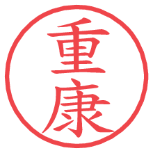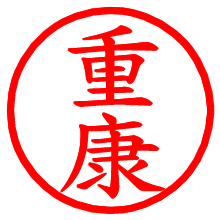 [朱肉の色]を選び、入力窓に“重康”と入力して[生成]ボタンを押すと、印影が更新され、リンクから電子印鑑(デジタル印影)がダウンロードできます。 電子印鑑「重康」の作り方文字表示が変なときや、文字バランスが悪いときは[字形切替]のチェックボックスでON/OFFを切り替え[生成]しなおしてください。 生成される画像は通常の印影「重康.png」と、にじみを表現した少し太めの印影「重康B.png」の背面透過PNG形式2種と、鮮明なPDF形式の印影「重康.pdf」の計3種類です。 朱肉の微妙な色の違いを7色で表現しました。デフォルト(左端)は、JISが定めた朱肉の色のマンセル値(7.5R 5/14)をRGB値(217,66,54)に変換したものになっています。 「電子透かし」にチェックを入れて[生成]ボタンを押すと、タイムスタンプを電子透かしとして埋め込んだセキュアな電子印鑑が作れます。詳細は別ページの「タイムスタンプと電子透かし」でご覧ください。 重康さんの日付印が作れます。「日付スタンプメーカー」は、社内向けの書類に利用されることの多い日付印(データ印)が無料で作れるWebアプリケーションです。中段に日付が入り、上段と下段は、ともに8文字まで文字が入ります。 ![]() 古代文字で落款印が作れます。「落款スタンプメーカー」で作品を引き立たせる落款印が作れます。