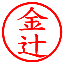 [朱肉の色]を選び、入力窓に“金辻”と入力して[生成]ボタンを押すと、印影が更新され、リンクから電子印鑑(デジタル印影)がダウンロードできます。 電子印鑑「金辻」の作り方文字表示が変なときや、文字バランスが悪いときは[字形切替]のチェックボックスでON/OFFを切り替え[生成]しなおしてください。 生成される画像は通常の印影「金辻.png」と、にじみを表現した少し太めの印影「金辻B.png」の背面透過PNG形式2種と、鮮明なPDF形式の印影「金辻.pdf」の計3種類です。 朱肉の微妙な色の違いを7色で表現しました。デフォルト(左端)は、JISが定めた朱肉の色のマンセル値(7.5R 5/14)をRGB値(217,66,54)に変換したものになっています。 「電子透かし」にチェックを入れて[生成]ボタンを押すと、タイムスタンプを電子透かしとして埋め込んだセキュアな電子印鑑が作れます。詳細は別ページの「タイムスタンプと電子透かし」でご覧ください。 金辻さんの日付印が作れます。「日付スタンプメーカー」は、社内向けの書類に利用されることの多い日付印(データ印)が無料で作れるWebアプリケーションです。中段に日付が入り、上段と下段は、ともに8文字まで文字が入ります。 ![]() 古代文字で落款印が作れます。「落款スタンプメーカー」で作品を引き立たせる落款印が作れます。
