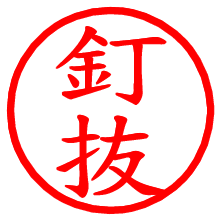 [朱肉の色]を選び、入力窓に“釘抜”と入力して[生成]ボタンを押すと、印影が更新され、リンクから電子印鑑(デジタル印影)がダウンロードできます。 電子印鑑「釘抜」の作り方文字表示が変なときや、文字バランスが悪いときは[字形切替]のチェックボックスでON/OFFを切り替え[生成]しなおしてください。 生成される画像は通常の印影「釘抜.png」と、にじみを表現した少し太めの印影「釘抜B.png」の背面透過PNG形式2種と、鮮明なPDF形式の印影「釘抜.pdf」の計3種類です。 朱肉の微妙な色の違いを7色で表現しました。デフォルト(左端)は、JISが定めた朱肉の色のマンセル値(7.5R 5/14)をRGB値(217,66,54)に変換したものになっています。 「電子透かし」にチェックを入れて[生成]ボタンを押すと、タイムスタンプを電子透かしとして埋め込んだセキュアな電子印鑑が作れます。詳細は別ページの「タイムスタンプと電子透かし」でご覧ください。 釘抜さんの日付印が作れます。「日付スタンプメーカー」は、社内向けの書類に利用されることの多い日付印(データ印)が無料で作れるWebアプリケーションです。中段に日付が入り、上段と下段は、ともに8文字まで文字が入ります。 ![]() 古代文字で落款印が作れます。「落款スタンプメーカー」で作品を引き立たせる落款印が作れます。