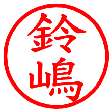 [朱肉の色]を選び、入力窓に“鈴嶋”と入力して[生成]ボタンを押すと、印影が更新され、リンクから電子印鑑(デジタル印影)がダウンロードできます。 電子印鑑「鈴嶋」の作り方文字表示が変なときや、文字バランスが悪いときは[字形切替]のチェックボックスでON/OFFを切り替え[生成]しなおしてください。 生成される画像は通常の印影「鈴嶋.png」と、にじみを表現した少し太めの印影「鈴嶋B.png」の背面透過PNG形式2種と、鮮明なPDF形式の印影「鈴嶋.pdf」の計3種類です。 朱肉の微妙な色の違いを7色で表現しました。デフォルト(左端)は、JISが定めた朱肉の色のマンセル値(7.5R 5/14)をRGB値(217,66,54)に変換したものになっています。 「電子透かし」にチェックを入れて[生成]ボタンを押すと、タイムスタンプを電子透かしとして埋め込んだセキュアな電子印鑑が作れます。詳細は別ページの「タイムスタンプと電子透かし」でご覧ください。 鈴嶋さんの日付印が作れます。「日付スタンプメーカー」は、社内向けの書類に利用されることの多い日付印(データ印)が無料で作れるWebアプリケーションです。中段に日付が入り、上段と下段は、ともに8文字まで文字が入ります。 ![]() 古代文字で落款印が作れます。「落款スタンプメーカー」で作品を引き立たせる落款印が作れます。