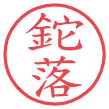 [朱肉の色]を選び、入力窓に“鉈落”と入力して[生成]ボタンを押すと、印影が更新され、リンクから電子印鑑(デジタル印影)がダウンロードできます。 電子印鑑「鉈落」の作り方文字表示が変なときや、文字バランスが悪いときは[字形切替]のチェックボックスでON/OFFを切り替え[生成]しなおしてください。 生成される画像は通常の印影「鉈落.png」と、にじみを表現した少し太めの印影「鉈落B.png」の背面透過PNG形式2種と、鮮明なPDF形式の印影「鉈落.pdf」の計3種類です。 朱肉の微妙な色の違いを7色で表現しました。デフォルト(左端)は、JISが定めた朱肉の色のマンセル値(7.5R 5/14)をRGB値(217,66,54)に変換したものになっています。 「電子透かし」にチェックを入れて[生成]ボタンを押すと、タイムスタンプを電子透かしとして埋め込んだセキュアな電子印鑑が作れます。詳細は別ページの「タイムスタンプと電子透かし」でご覧ください。 鉈落さんの日付印が作れます。「日付スタンプメーカー」は、社内向けの書類に利用されることの多い日付印(データ印)が無料で作れるWebアプリケーションです。中段に日付が入り、上段と下段は、ともに8文字まで文字が入ります。 ![]() 古代文字で落款印が作れます。「落款スタンプメーカー」で作品を引き立たせる落款印が作れます。