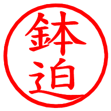 [朱肉の色]を選び、入力窓に“鉢迫”と入力して[生成]ボタンを押すと、印影が更新され、リンクから電子印鑑(デジタル印影)がダウンロードできます。 電子印鑑「鉢迫」の作り方文字表示が変なときや、文字バランスが悪いときは[字形切替]のチェックボックスでON/OFFを切り替え[生成]しなおしてください。 生成される画像は通常の印影「鉢迫.png」と、にじみを表現した少し太めの印影「鉢迫B.png」の背面透過PNG形式2種と、鮮明なPDF形式の印影「鉢迫.pdf」の計3種類です。 朱肉の微妙な色の違いを7色で表現しました。デフォルト(左端)は、JISが定めた朱肉の色のマンセル値(7.5R 5/14)をRGB値(217,66,54)に変換したものになっています。 「電子透かし」にチェックを入れて[生成]ボタンを押すと、タイムスタンプを電子透かしとして埋め込んだセキュアな電子印鑑が作れます。詳細は別ページの「タイムスタンプと電子透かし」でご覧ください。 鉢迫さんの日付印が作れます。「日付スタンプメーカー」は、社内向けの書類に利用されることの多い日付印(データ印)が無料で作れるWebアプリケーションです。中段に日付が入り、上段と下段は、ともに8文字まで文字が入ります。 ![]() 古代文字で落款印が作れます。「落款スタンプメーカー」で作品を引き立たせる落款印が作れます。