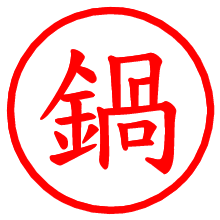 [朱肉の色]を選び、入力窓に“鍋”と入力して[生成]ボタンを押すと、印影が更新され、リンクから電子印鑑(デジタル印影)がダウンロードできます。 電子印鑑「鍋」の作り方文字表示が変なときや、文字バランスが悪いときは[字形切替]のチェックボックスでON/OFFを切り替え[生成]しなおしてください。 生成される画像は通常の印影「鍋.png」と、にじみを表現した少し太めの印影「鍋B.png」の背面透過PNG形式2種と、鮮明なPDF形式の印影「鍋.pdf」の計3種類です。 朱肉の微妙な色の違いを7色で表現しました。デフォルト(左端)は、JISが定めた朱肉の色のマンセル値(7.5R 5/14)をRGB値(217,66,54)に変換したものになっています。 「電子透かし」にチェックを入れて[生成]ボタンを押すと、タイムスタンプを透かしとして埋め込んだセキュアな電子印鑑が作れます。詳細は別ページの「電子透かしとタイムスタンプ」でご覧ください。  鍋さんの日付印が作れます。「日付スタンプメーカー」は、社内向けの書類に利用されることの多い日付印(データ印)が無料で作れるWebアプリケーションです。中段に日付が入り、上段と下段は、ともに8文字まで文字が入ります。 ![]()  古代文字で落款印が作れます。「落款スタンプメーカー」で作品を引き立たせる落款印が作れます。