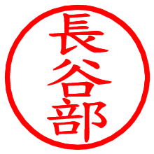 [朱肉の色]を選び、入力窓に“長谷部”と入力して[生成]ボタンを押すと、印影が更新され、リンクから電子印鑑(デジタル印影)がダウンロードできます。 電子印鑑「長谷部」の作り方文字表示が変なときや、文字バランスが悪いときは[字形切替]のチェックボックスでON/OFFを切り替え[生成]しなおしてください。 生成される画像は通常の印影「長谷部.png」と、にじみを表現した少し太めの印影「長谷部B.png」の背面透過PNG形式2種と、鮮明なPDF形式の印影「長谷部.pdf」の計3種類です。 朱肉の微妙な色の違いを7色で表現しました。デフォルト(左端)は、JISが定めた朱肉の色のマンセル値(7.5R 5/14)をRGB値(217,66,54)に変換したものになっています。 「電子透かし」にチェックを入れて[生成]ボタンを押すと、タイムスタンプを透かしとして埋め込んだセキュアな電子印鑑が作れます。詳細は別ページの「電子透かしとタイムスタンプ」でご覧ください。 長谷部さんの日付印が作れます。「日付スタンプメーカー」は、社内向けの書類に利用されることの多い日付印(データ印)が無料で作れるWebアプリケーションです。中段に日付が入り、上段と下段は、ともに8文字まで文字が入ります。 ![]() 古代文字で落款印が作れます。「落款スタンプメーカー」で作品を引き立たせる落款印が作れます。