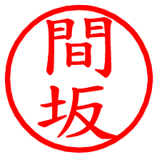 [朱肉の色]を選び、入力窓に“間坂”と入力して[生成]ボタンを押すと、印影が更新され、リンクから電子印鑑(デジタル印影)がダウンロードできます。 電子印鑑「間坂」の作り方文字表示が変なときや、文字バランスが悪いときは[字形切替]のチェックボックスでON/OFFを切り替え[生成]しなおしてください。 生成される画像は通常の印影「間坂.png」と、にじみを表現した少し太めの印影「間坂B.png」の背面透過PNG形式2種と、鮮明なPDF形式の印影「間坂.pdf」の計3種類です。 朱肉の微妙な色の違いを7色で表現しました。デフォルト(左端)は、JISが定めた朱肉の色のマンセル値(7.5R 5/14)をRGB値(217,66,54)に変換したものになっています。 「電子透かし」にチェックを入れて[生成]ボタンを押すと、タイムスタンプを電子透かしとして埋め込んだセキュアな電子印鑑が作れます。詳細は別ページの「タイムスタンプと電子透かし」でご覧ください。 間坂さんの日付印が作れます。「日付スタンプメーカー」は、社内向けの書類に利用されることの多い日付印(データ印)が無料で作れるWebアプリケーションです。中段に日付が入り、上段と下段は、ともに8文字まで文字が入ります。 ![]() 古代文字で落款印が作れます。「落款スタンプメーカー」で作品を引き立たせる落款印が作れます。