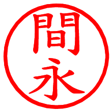 [朱肉の色]を選び、入力窓に“間永”と入力して[生成]ボタンを押すと、印影が更新され、リンクから電子印鑑(デジタル印影)がダウンロードできます。 電子印鑑「間永」の作り方文字表示が変なときや、文字バランスが悪いときは[字形切替]のチェックボックスでON/OFFを切り替え[生成]しなおしてください。 生成される画像は通常の印影「間永.png」と、にじみを表現した少し太めの印影「間永B.png」の背面透過PNG形式2種と、鮮明なPDF形式の印影「間永.pdf」の計3種類です。 朱肉の微妙な色の違いを7色で表現しました。デフォルト(左端)は、JISが定めた朱肉の色のマンセル値(7.5R 5/14)をRGB値(217,66,54)に変換したものになっています。 「電子透かし」にチェックを入れて[生成]ボタンを押すと、タイムスタンプを電子透かしとして埋め込んだセキュアな電子印鑑が作れます。詳細は別ページの「タイムスタンプと電子透かし」でご覧ください。 間永さんの日付印が作れます。「日付スタンプメーカー」は、社内向けの書類に利用されることの多い日付印(データ印)が無料で作れるWebアプリケーションです。中段に日付が入り、上段と下段は、ともに8文字まで文字が入ります。 ![]() 古代文字で落款印が作れます。「落款スタンプメーカー」で作品を引き立たせる落款印が作れます。