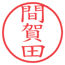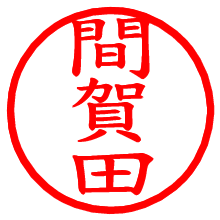 [朱肉の色]を選び、入力窓に“間賀田”と入力して[生成]ボタンを押すと、印影が更新され、リンクから電子印鑑(デジタル印影)がダウンロードできます。 電子印鑑「間賀田」の作り方文字表示が変なときや、文字バランスが悪いときは[字形切替]のチェックボックスでON/OFFを切り替え[生成]しなおしてください。 生成される画像は通常の印影「間賀田.png」と、にじみを表現した少し太めの印影「間賀田B.png」の背面透過PNG形式2種と、鮮明なPDF形式の印影「間賀田.pdf」の計3種類です。 朱肉の微妙な色の違いを7色で表現しました。デフォルト(左端)は、JISが定めた朱肉の色のマンセル値(7.5R 5/14)をRGB値(217,66,54)に変換したものになっています。 「電子透かし」にチェックを入れて[生成]ボタンを押すと、タイムスタンプを電子透かしとして埋め込んだセキュアな電子印鑑が作れます。詳細は別ページの「タイムスタンプと電子透かし」でご覧ください。 間賀田さんの日付印が作れます。「日付スタンプメーカー」は、社内向けの書類に利用されることの多い日付印(データ印)が無料で作れるWebアプリケーションです。中段に日付が入り、上段と下段は、ともに8文字まで文字が入ります。 ![]() 古代文字で落款印が作れます。「落款スタンプメーカー」で作品を引き立たせる落款印が作れます。