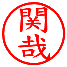 [朱肉の色]を選び、入力窓に“関哉”と入力して[生成]ボタンを押すと、印影が更新され、リンクから電子印鑑(デジタル印影)がダウンロードできます。 電子印鑑「関哉」の作り方文字表示が変なときや、文字バランスが悪いときは[字形切替]のチェックボックスでON/OFFを切り替え[生成]しなおしてください。 生成される画像は通常の印影「関哉.png」と、にじみを表現した少し太めの印影「関哉B.png」の背面透過PNG形式2種と、鮮明なPDF形式の印影「関哉.pdf」の計3種類です。 朱肉の微妙な色の違いを7色で表現しました。デフォルト(左端)は、JISが定めた朱肉の色のマンセル値(7.5R 5/14)をRGB値(217,66,54)に変換したものになっています。 「電子透かし」にチェックを入れて[生成]ボタンを押すと、タイムスタンプを電子透かしとして埋め込んだセキュアな電子印鑑が作れます。詳細は別ページの「タイムスタンプと電子透かし」でご覧ください。 関哉さんの日付印が作れます。「日付スタンプメーカー」は、社内向けの書類に利用されることの多い日付印(データ印)が無料で作れるWebアプリケーションです。中段に日付が入り、上段と下段は、ともに8文字まで文字が入ります。 ![]() 古代文字で落款印が作れます。「落款スタンプメーカー」で作品を引き立たせる落款印が作れます。