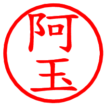 [朱肉の色]を選び、入力窓に“阿玉”と入力して[生成]ボタンを押すと、印影が更新され、リンクから電子印鑑(デジタル印影)がダウンロードできます。 電子印鑑「阿玉」の作り方文字表示が変なときや、文字バランスが悪いときは[字形切替]のチェックボックスでON/OFFを切り替え[生成]しなおしてください。 生成される画像は通常の印影「阿玉.png」と、にじみを表現した少し太めの印影「阿玉B.png」の背面透過PNG形式2種と、鮮明なPDF形式の印影「阿玉.pdf」の計3種類です。 朱肉の微妙な色の違いを7色で表現しました。デフォルト(左端)は、JISが定めた朱肉の色のマンセル値(7.5R 5/14)をRGB値(217,66,54)に変換したものになっています。 「電子透かし」にチェックを入れて[生成]ボタンを押すと、タイムスタンプを電子透かしとして埋め込んだセキュアな電子印鑑が作れます。詳細は別ページの「タイムスタンプと電子透かし」でご覧ください。 阿玉さんの日付印が作れます。「日付スタンプメーカー」は、社内向けの書類に利用されることの多い日付印(データ印)が無料で作れるWebアプリケーションです。中段に日付が入り、上段と下段は、ともに8文字まで文字が入ります。 ![]() 古代文字で落款印が作れます。「落款スタンプメーカー」で作品を引き立たせる落款印が作れます。