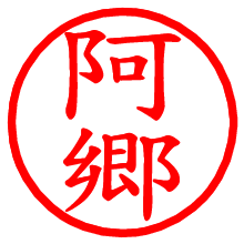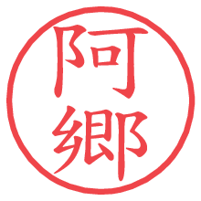 [朱肉の色]を選び、入力窓に“阿郷”と入力して[生成]ボタンを押すと、印影が更新され、リンクから電子印鑑(デジタル印影)がダウンロードできます。 電子印鑑「阿郷」の作り方文字表示が変なときや、文字バランスが悪いときは[字形切替]のチェックボックスでON/OFFを切り替え[生成]しなおしてください。 生成される画像は通常の印影「阿郷.png」と、にじみを表現した少し太めの印影「阿郷B.png」の背面透過PNG形式2種と、鮮明なPDF形式の印影「阿郷.pdf」の計3種類です。 朱肉の微妙な色の違いを7色で表現しました。デフォルト(左端)は、JISが定めた朱肉の色のマンセル値(7.5R 5/14)をRGB値(217,66,54)に変換したものになっています。 「電子透かし」にチェックを入れて[生成]ボタンを押すと、タイムスタンプを電子透かしとして埋め込んだセキュアな電子印鑑が作れます。詳細は別ページの「タイムスタンプと電子透かし」でご覧ください。 阿郷さんの日付印が作れます。「日付スタンプメーカー」は、社内向けの書類に利用されることの多い日付印(データ印)が無料で作れるWebアプリケーションです。中段に日付が入り、上段と下段は、ともに8文字まで文字が入ります。 ![]() 古代文字で落款印が作れます。「落款スタンプメーカー」で作品を引き立たせる落款印が作れます。