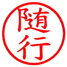 [朱肉の色]を選び、入力窓に“随行”と入力して[生成]ボタンを押すと、印影が更新され、リンクから電子印鑑(デジタル印影)がダウンロードできます。 電子印鑑「随行」の作り方文字表示が変なときや、文字バランスが悪いときは[字形切替]のチェックボックスでON/OFFを切り替え[生成]しなおしてください。 生成される画像は通常の印影「随行.png」と、にじみを表現した少し太めの印影「随行B.png」の背面透過PNG形式2種と、鮮明なPDF形式の印影「随行.pdf」の計3種類です。 朱肉の微妙な色の違いを7色で表現しました。デフォルト(左端)は、JISが定めた朱肉の色のマンセル値(7.5R 5/14)をRGB値(217,66,54)に変換したものになっています。 「電子透かし」にチェックを入れて[生成]ボタンを押すと、タイムスタンプを電子透かしとして埋め込んだセキュアな電子印鑑が作れます。詳細は別ページの「タイムスタンプと電子透かし」でご覧ください。 随行さんの日付印が作れます。「日付スタンプメーカー」は、社内向けの書類に利用されることの多い日付印(データ印)が無料で作れるWebアプリケーションです。中段に日付が入り、上段と下段は、ともに8文字まで文字が入ります。 ![]() 古代文字で落款印が作れます。「落款スタンプメーカー」で作品を引き立たせる落款印が作れます。