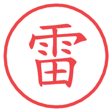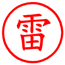 [朱肉の色]を選び、入力窓に“雷”と入力して[生成]ボタンを押すと、印影が更新され、リンクから電子印鑑(デジタル印影)がダウンロードできます。 電子印鑑「雷」の作り方文字表示が変なときや、文字バランスが悪いときは[字形切替]のチェックボックスでON/OFFを切り替え[生成]しなおしてください。 生成される画像は通常の印影「雷.png」と、にじみを表現した少し太めの印影「雷B.png」の背面透過PNG形式2種と、鮮明なPDF形式の印影「雷.pdf」の計3種類です。 朱肉の微妙な色の違いを7色で表現しました。デフォルト(左端)は、JISが定めた朱肉の色のマンセル値(7.5R 5/14)をRGB値(217,66,54)に変換したものになっています。 「電子透かし」にチェックを入れて[生成]ボタンを押すと、タイムスタンプを電子透かしとして埋め込んだセキュアな電子印鑑が作れます。詳細は別ページの「タイムスタンプと電子透かし」でご覧ください。 雷さんの日付印が作れます。「日付スタンプメーカー」は、社内向けの書類に利用されることの多い日付印(データ印)が無料で作れるWebアプリケーションです。中段に日付が入り、上段と下段は、ともに8文字まで文字が入ります。 ![]() 古代文字で落款印が作れます。「落款スタンプメーカー」で作品を引き立たせる落款印が作れます。