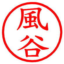 [朱肉の色]を選び、入力窓に“風谷”と入力して[生成]ボタンを押すと、印影が更新され、リンクから電子印鑑(デジタル印影)がダウンロードできます。 電子印鑑「風谷」の作り方文字表示が変なときや、文字バランスが悪いときは[字形切替]のチェックボックスでON/OFFを切り替え[生成]しなおしてください。 生成される画像は通常の印影「風谷.png」と、にじみを表現した少し太めの印影「風谷B.png」の背面透過PNG形式2種と、鮮明なPDF形式の印影「風谷.pdf」の計3種類です。 朱肉の微妙な色の違いを7色で表現しました。デフォルト(左端)は、JISが定めた朱肉の色のマンセル値(7.5R 5/14)をRGB値(217,66,54)に変換したものになっています。 「電子透かし」にチェックを入れて[生成]ボタンを押すと、タイムスタンプを透かしとして埋め込んだセキュアな電子印鑑が作れます。詳細は別ページの「電子透かしとタイムスタンプ」でご覧ください。 風谷さんの日付印が作れます。「日付スタンプメーカー」は、社内向けの書類に利用されることの多い日付印(データ印)が無料で作れるWebアプリケーションです。中段に日付が入り、上段と下段は、ともに8文字まで文字が入ります。 ![]() 古代文字で落款印が作れます。「落款スタンプメーカー」で作品を引き立たせる落款印が作れます。