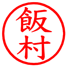 [朱肉の色]を選び、入力窓に“飯村”と入力して[生成]ボタンを押すと、印影が更新され、リンクから電子印鑑(デジタル印影)がダウンロードできます。 電子印鑑「飯村」の作り方文字表示が変なときや、文字バランスが悪いときは[字形切替]のチェックボックスでON/OFFを切り替え[生成]しなおしてください。 生成される画像は通常の印影「飯村.png」と、にじみを表現した少し太めの印影「飯村B.png」の背面透過PNG形式2種と、鮮明なPDF形式の印影「飯村.pdf」の計3種類です。 朱肉の微妙な色の違いを7色で表現しました。デフォルト(左端)は、JISが定めた朱肉の色のマンセル値(7.5R 5/14)をRGB値(217,66,54)に変換したものになっています。 「電子透かし」にチェックを入れて[生成]ボタンを押すと、タイムスタンプを透かしとして埋め込んだセキュアな電子印鑑が作れます。詳細は別ページの「電子透かしとタイムスタンプ」でご覧ください。 飯村さんの日付印が作れます。「日付スタンプメーカー」は、社内向けの書類に利用されることの多い日付印(データ印)が無料で作れるWebアプリケーションです。中段に日付が入り、上段と下段は、ともに8文字まで文字が入ります。 ![]() 古代文字で落款印が作れます。「落款スタンプメーカー」で作品を引き立たせる落款印が作れます。