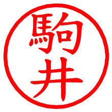 [朱肉の色]を選び、入力窓に“駒井”と入力して[生成]ボタンを押すと、印影が更新され、リンクから電子印鑑(デジタル印影)がダウンロードできます。 電子印鑑「駒井」の作り方文字表示が変なときや、文字バランスが悪いときは[字形切替]のチェックボックスでON/OFFを切り替え[生成]しなおしてください。 生成される画像は通常の印影「駒井.png」と、にじみを表現した少し太めの印影「駒井B.png」の背面透過PNG形式2種と、鮮明なPDF形式の印影「駒井.pdf」の計3種類です。 朱肉の微妙な色の違いを7色で表現しました。デフォルト(左端)は、JISが定めた朱肉の色のマンセル値(7.5R 5/14)をRGB値(217,66,54)に変換したものになっています。 「電子透かし」にチェックを入れて[生成]ボタンを押すと、タイムスタンプを透かしとして埋め込んだセキュアな電子印鑑が作れます。詳細は別ページの「電子透かしとタイムスタンプ」でご覧ください。 駒井さんの日付印が作れます。「日付スタンプメーカー」は、社内向けの書類に利用されることの多い日付印(データ印)が無料で作れるWebアプリケーションです。中段に日付が入り、上段と下段は、ともに8文字まで文字が入ります。 ![]() 古代文字で落款印が作れます。「落款スタンプメーカー」で作品を引き立たせる落款印が作れます。