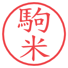 [朱肉の色]を選び、入力窓に“駒米”と入力して[生成]ボタンを押すと、印影が更新され、リンクから電子印鑑(デジタル印影)がダウンロードできます。 電子印鑑「駒米」の作り方文字表示が変なときや、文字バランスが悪いときは[字形切替]のチェックボックスでON/OFFを切り替え[生成]しなおしてください。 生成される画像は通常の印影「駒米.png」と、にじみを表現した少し太めの印影「駒米B.png」の背面透過PNG形式2種と、鮮明なPDF形式の印影「駒米.pdf」の計3種類です。 朱肉の微妙な色の違いを7色で表現しました。デフォルト(左端)は、JISが定めた朱肉の色のマンセル値(7.5R 5/14)をRGB値(217,66,54)に変換したものになっています。 「電子透かし」にチェックを入れて[生成]ボタンを押すと、タイムスタンプを電子透かしとして埋め込んだセキュアな電子印鑑が作れます。詳細は別ページの「タイムスタンプと電子透かし」でご覧ください。 駒米さんの日付印が作れます。「日付スタンプメーカー」は、社内向けの書類に利用されることの多い日付印(データ印)が無料で作れるWebアプリケーションです。中段に日付が入り、上段と下段は、ともに8文字まで文字が入ります。 ![]() 古代文字で落款印が作れます。「落款スタンプメーカー」で作品を引き立たせる落款印が作れます。