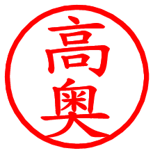 [朱肉の色]を選び、入力窓に“高奥”と入力して[生成]ボタンを押すと、印影が更新され、リンクから電子印鑑(デジタル印影)がダウンロードできます。 電子印鑑「高奥」の作り方文字表示が変なときや、文字バランスが悪いときは[字形切替]のチェックボックスでON/OFFを切り替え[生成]しなおしてください。 生成される画像は通常の印影「高奥.png」と、にじみを表現した少し太めの印影「高奥B.png」の背面透過PNG形式2種と、鮮明なPDF形式の印影「高奥.pdf」の計3種類です。 朱肉の微妙な色の違いを7色で表現しました。デフォルト(左端)は、JISが定めた朱肉の色のマンセル値(7.5R 5/14)をRGB値(217,66,54)に変換したものになっています。 「電子透かし」にチェックを入れて[生成]ボタンを押すと、タイムスタンプを透かしとして埋め込んだセキュアな電子印鑑が作れます。詳細は別ページの「電子透かしとタイムスタンプ」でご覧ください。 高奥さんの日付印が作れます。「日付スタンプメーカー」は、社内向けの書類に利用されることの多い日付印(データ印)が無料で作れるWebアプリケーションです。中段に日付が入り、上段と下段は、ともに8文字まで文字が入ります。 ![]() 古代文字で落款印が作れます。「落款スタンプメーカー」で作品を引き立たせる落款印が作れます。