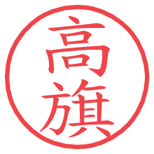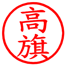 [朱肉の色]を選び、入力窓に“高旗”と入力して[生成]ボタンを押すと、印影が更新され、リンクから電子印鑑(デジタル印影)がダウンロードできます。 電子印鑑「高旗」の作り方文字表示が変なときや、文字バランスが悪いときは[字形切替]のチェックボックスでON/OFFを切り替え[生成]しなおしてください。 生成される画像は通常の印影「高旗.png」と、にじみを表現した少し太めの印影「高旗B.png」の背面透過PNG形式2種と、鮮明なPDF形式の印影「高旗.pdf」の計3種類です。 朱肉の微妙な色の違いを7色で表現しました。デフォルト(左端)は、JISが定めた朱肉の色のマンセル値(7.5R 5/14)をRGB値(217,66,54)に変換したものになっています。 「電子透かし」にチェックを入れて[生成]ボタンを押すと、タイムスタンプを透かしとして埋め込んだセキュアな電子印鑑が作れます。詳細は別ページの「電子透かしとタイムスタンプ」でご覧ください。 高旗さんの日付印が作れます。「日付スタンプメーカー」は、社内向けの書類に利用されることの多い日付印(データ印)が無料で作れるWebアプリケーションです。中段に日付が入り、上段と下段は、ともに8文字まで文字が入ります。 ![]() 古代文字で落款印が作れます。「落款スタンプメーカー」で作品を引き立たせる落款印が作れます。