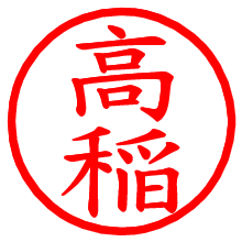 [朱肉の色]を選び、入力窓に“高稲”と入力して[生成]ボタンを押すと、印影が更新され、リンクから電子印鑑(デジタル印影)がダウンロードできます。 電子印鑑「高稲」の作り方文字表示が変なときや、文字バランスが悪いときは[字形切替]のチェックボックスでON/OFFを切り替え[生成]しなおしてください。 生成される画像は通常の印影「高稲.png」と、にじみを表現した少し太めの印影「高稲B.png」の背面透過PNG形式2種と、鮮明なPDF形式の印影「高稲.pdf」の計3種類です。 朱肉の微妙な色の違いを7色で表現しました。デフォルト(左端)は、JISが定めた朱肉の色のマンセル値(7.5R 5/14)をRGB値(217,66,54)に変換したものになっています。 「電子透かし」にチェックを入れて[生成]ボタンを押すと、タイムスタンプを透かしとして埋め込んだセキュアな電子印鑑が作れます。詳細は別ページの「電子透かしとタイムスタンプ」でご覧ください。 高稲さんの日付印が作れます。「日付スタンプメーカー」は、社内向けの書類に利用されることの多い日付印(データ印)が無料で作れるWebアプリケーションです。中段に日付が入り、上段と下段は、ともに8文字まで文字が入ります。 ![]() 古代文字で落款印が作れます。「落款スタンプメーカー」で作品を引き立たせる落款印が作れます。