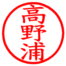 [朱肉の色]を選び、入力窓に“高野浦”と入力して[生成]ボタンを押すと、印影が更新され、リンクから電子印鑑(デジタル印影)がダウンロードできます。 電子印鑑「高野浦」の作り方文字表示が変なときや、文字バランスが悪いときは[字形切替]のチェックボックスでON/OFFを切り替え[生成]しなおしてください。 生成される画像は通常の印影「高野浦.png」と、にじみを表現した少し太めの印影「高野浦B.png」の背面透過PNG形式2種と、鮮明なPDF形式の印影「高野浦.pdf」の計3種類です。 朱肉の微妙な色の違いを7色で表現しました。デフォルト(左端)は、JISが定めた朱肉の色のマンセル値(7.5R 5/14)をRGB値(217,66,54)に変換したものになっています。 「電子透かし」にチェックを入れて[生成]ボタンを押すと、タイムスタンプを電子透かしとして埋め込んだセキュアな電子印鑑が作れます。詳細は別ページの「タイムスタンプと電子透かし」でご覧ください。 高野浦さんの日付印が作れます。「日付スタンプメーカー」は、社内向けの書類に利用されることの多い日付印(データ印)が無料で作れるWebアプリケーションです。中段に日付が入り、上段と下段は、ともに8文字まで文字が入ります。 ![]() 古代文字で落款印が作れます。「落款スタンプメーカー」で作品を引き立たせる落款印が作れます。