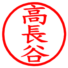 [朱肉の色]を選び、入力窓に“高長谷”と入力して[生成]ボタンを押すと、印影が更新され、リンクから電子印鑑(デジタル印影)がダウンロードできます。 電子印鑑「高長谷」の作り方文字表示が変なときや、文字バランスが悪いときは[字形切替]のチェックボックスでON/OFFを切り替え[生成]しなおしてください。 生成される画像は通常の印影「高長谷.png」と、にじみを表現した少し太めの印影「高長谷B.png」の背面透過PNG形式2種と、鮮明なPDF形式の印影「高長谷.pdf」の計3種類です。 朱肉の微妙な色の違いを7色で表現しました。デフォルト(左端)は、JISが定めた朱肉の色のマンセル値(7.5R 5/14)をRGB値(217,66,54)に変換したものになっています。 「電子透かし」にチェックを入れて[生成]ボタンを押すと、タイムスタンプを電子透かしとして埋め込んだセキュアな電子印鑑が作れます。詳細は別ページの「タイムスタンプと電子透かし」でご覧ください。 高長谷さんの日付印が作れます。「日付スタンプメーカー」は、社内向けの書類に利用されることの多い日付印(データ印)が無料で作れるWebアプリケーションです。中段に日付が入り、上段と下段は、ともに8文字まで文字が入ります。 ![]() 古代文字で落款印が作れます。「落款スタンプメーカー」で作品を引き立たせる落款印が作れます。