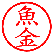 [朱肉の色]を選び、入力窓に“魚金”と入力して[生成]ボタンを押すと、印影が更新され、リンクから電子印鑑(デジタル印影)がダウンロードできます。 電子印鑑「魚金」の作り方文字表示が変なときや、文字バランスが悪いときは[字形切替]のチェックボックスでON/OFFを切り替え[生成]しなおしてください。 生成される画像は通常の印影「魚金.png」と、にじみを表現した少し太めの印影「魚金B.png」の背面透過PNG形式2種と、鮮明なPDF形式の印影「魚金.pdf」の計3種類です。 朱肉の微妙な色の違いを7色で表現しました。デフォルト(左端)は、JISが定めた朱肉の色のマンセル値(7.5R 5/14)をRGB値(217,66,54)に変換したものになっています。 「電子透かし」にチェックを入れて[生成]ボタンを押すと、タイムスタンプを電子透かしとして埋め込んだセキュアな電子印鑑が作れます。詳細は別ページの「タイムスタンプと電子透かし」でご覧ください。 魚金さんの日付印が作れます。「日付スタンプメーカー」は、社内向けの書類に利用されることの多い日付印(データ印)が無料で作れるWebアプリケーションです。中段に日付が入り、上段と下段は、ともに8文字まで文字が入ります。 ![]() 古代文字で落款印が作れます。「落款スタンプメーカー」で作品を引き立たせる落款印が作れます。