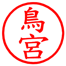 [朱肉の色]を選び、入力窓に“鳥宮”と入力して[生成]ボタンを押すと、印影が更新され、リンクから電子印鑑(デジタル印影)がダウンロードできます。 電子印鑑「鳥宮」の作り方文字表示が変なときや、文字バランスが悪いときは[字形切替]のチェックボックスでON/OFFを切り替え[生成]しなおしてください。 生成される画像は通常の印影「鳥宮.png」と、にじみを表現した少し太めの印影「鳥宮B.png」の背面透過PNG形式2種と、鮮明なPDF形式の印影「鳥宮.pdf」の計3種類です。 朱肉の微妙な色の違いを7色で表現しました。デフォルト(左端)は、JISが定めた朱肉の色のマンセル値(7.5R 5/14)をRGB値(217,66,54)に変換したものになっています。 「電子透かし」にチェックを入れて[生成]ボタンを押すと、タイムスタンプを電子透かしとして埋め込んだセキュアな電子印鑑が作れます。詳細は別ページの「タイムスタンプと電子透かし」でご覧ください。 鳥宮さんの日付印が作れます。「日付スタンプメーカー」は、社内向けの書類に利用されることの多い日付印(データ印)が無料で作れるWebアプリケーションです。中段に日付が入り、上段と下段は、ともに8文字まで文字が入ります。 ![]() 古代文字で落款印が作れます。「落款スタンプメーカー」で作品を引き立たせる落款印が作れます。