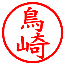[朱肉の色]を選び、入力窓に“鳥崎”と入力して[生成]ボタンを押すと、印影が更新され、リンクから電子印鑑(デジタル印影)がダウンロードできます。 電子印鑑「鳥崎」の作り方文字表示が変なときや、文字バランスが悪いときは[字形切替]のチェックボックスでON/OFFを切り替え[生成]しなおしてください。 生成される画像は通常の印影「鳥崎.png」と、にじみを表現した少し太めの印影「鳥崎B.png」の背面透過PNG形式2種と、鮮明なPDF形式の印影「鳥崎.pdf」の計3種類です。 朱肉の微妙な色の違いを7色で表現しました。デフォルト(左端)は、JISが定めた朱肉の色のマンセル値(7.5R 5/14)をRGB値(217,66,54)に変換したものになっています。 「電子透かし」にチェックを入れて[生成]ボタンを押すと、タイムスタンプを電子透かしとして埋め込んだセキュアな電子印鑑が作れます。詳細は別ページの「タイムスタンプと電子透かし」でご覧ください。 鳥崎さんの日付印が作れます。「日付スタンプメーカー」は、社内向けの書類に利用されることの多い日付印(データ印)が無料で作れるWebアプリケーションです。中段に日付が入り、上段と下段は、ともに8文字まで文字が入ります。 ![]() 古代文字で落款印が作れます。「落款スタンプメーカー」で作品を引き立たせる落款印が作れます。