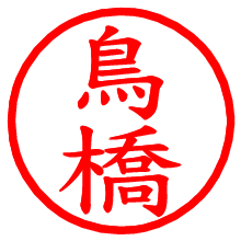 [朱肉の色]を選び、入力窓に“鳥橋”と入力して[生成]ボタンを押すと、印影が更新され、リンクから電子印鑑(デジタル印影)がダウンロードできます。 電子印鑑「鳥橋」の作り方文字表示が変なときや、文字バランスが悪いときは[字形切替]のチェックボックスでON/OFFを切り替え[生成]しなおしてください。 生成される画像は通常の印影「鳥橋.png」と、にじみを表現した少し太めの印影「鳥橋B.png」の背面透過PNG形式2種と、鮮明なPDF形式の印影「鳥橋.pdf」の計3種類です。 朱肉の微妙な色の違いを7色で表現しました。デフォルト(左端)は、JISが定めた朱肉の色のマンセル値(7.5R 5/14)をRGB値(217,66,54)に変換したものになっています。 「電子透かし」にチェックを入れて[生成]ボタンを押すと、タイムスタンプを電子透かしとして埋め込んだセキュアな電子印鑑が作れます。詳細は別ページの「タイムスタンプと電子透かし」でご覧ください。 鳥橋さんの日付印が作れます。「日付スタンプメーカー」は、社内向けの書類に利用されることの多い日付印(データ印)が無料で作れるWebアプリケーションです。中段に日付が入り、上段と下段は、ともに8文字まで文字が入ります。 ![]() 古代文字で落款印が作れます。「落款スタンプメーカー」で作品を引き立たせる落款印が作れます。