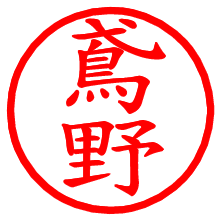 [朱肉の色]を選び、入力窓に“鳶野”と入力して[生成]ボタンを押すと、印影が更新され、リンクから電子印鑑(デジタル印影)がダウンロードできます。 電子印鑑「鳶野」の作り方文字表示が変なときや、文字バランスが悪いときは[字形切替]のチェックボックスでON/OFFを切り替え[生成]しなおしてください。 生成される画像は通常の印影「鳶野.png」と、にじみを表現した少し太めの印影「鳶野B.png」の背面透過PNG形式2種と、鮮明なPDF形式の印影「鳶野.pdf」の計3種類です。 朱肉の微妙な色の違いを7色で表現しました。デフォルト(左端)は、JISが定めた朱肉の色のマンセル値(7.5R 5/14)をRGB値(217,66,54)に変換したものになっています。 「電子透かし」にチェックを入れて[生成]ボタンを押すと、タイムスタンプを電子透かしとして埋め込んだセキュアな電子印鑑が作れます。詳細は別ページの「タイムスタンプと電子透かし」でご覧ください。 鳶野さんの日付印が作れます。「日付スタンプメーカー」は、社内向けの書類に利用されることの多い日付印(データ印)が無料で作れるWebアプリケーションです。中段に日付が入り、上段と下段は、ともに8文字まで文字が入ります。 ![]() 古代文字で落款印が作れます。「落款スタンプメーカー」で作品を引き立たせる落款印が作れます。