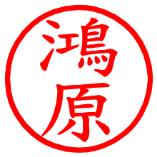 [朱肉の色]を選び、入力窓に“鴻原”と入力して[生成]ボタンを押すと、印影が更新され、リンクから電子印鑑(デジタル印影)がダウンロードできます。 電子印鑑「鴻原」の作り方文字表示が変なときや、文字バランスが悪いときは[字形切替]のチェックボックスでON/OFFを切り替え[生成]しなおしてください。 生成される画像は通常の印影「鴻原.png」と、にじみを表現した少し太めの印影「鴻原B.png」の背面透過PNG形式2種と、鮮明なPDF形式の印影「鴻原.pdf」の計3種類です。 朱肉の微妙な色の違いを7色で表現しました。デフォルト(左端)は、JISが定めた朱肉の色のマンセル値(7.5R 5/14)をRGB値(217,66,54)に変換したものになっています。 「電子透かし」にチェックを入れて[生成]ボタンを押すと、タイムスタンプを電子透かしとして埋め込んだセキュアな電子印鑑が作れます。詳細は別ページの「タイムスタンプと電子透かし」でご覧ください。 鴻原さんの日付印が作れます。「日付スタンプメーカー」は、社内向けの書類に利用されることの多い日付印(データ印)が無料で作れるWebアプリケーションです。中段に日付が入り、上段と下段は、ともに8文字まで文字が入ります。 ![]() 古代文字で落款印が作れます。「落款スタンプメーカー」で作品を引き立たせる落款印が作れます。