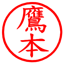 [朱肉の色]を選び、入力窓に“鷹本”と入力して[生成]ボタンを押すと、印影が更新され、リンクから電子印鑑(デジタル印影)がダウンロードできます。 電子印鑑「鷹本」の作り方文字表示が変なときや、文字バランスが悪いときは[字形切替]のチェックボックスでON/OFFを切り替え[生成]しなおしてください。 生成される画像は通常の印影「鷹本.png」と、にじみを表現した少し太めの印影「鷹本B.png」の背面透過PNG形式2種と、鮮明なPDF形式の印影「鷹本.pdf」の計3種類です。 朱肉の微妙な色の違いを7色で表現しました。デフォルト(左端)は、JISが定めた朱肉の色のマンセル値(7.5R 5/14)をRGB値(217,66,54)に変換したものになっています。 「電子透かし」にチェックを入れて[生成]ボタンを押すと、タイムスタンプを電子透かしとして埋め込んだセキュアな電子印鑑が作れます。詳細は別ページの「タイムスタンプと電子透かし」でご覧ください。 鷹本さんの日付印が作れます。「日付スタンプメーカー」は、社内向けの書類に利用されることの多い日付印(データ印)が無料で作れるWebアプリケーションです。中段に日付が入り、上段と下段は、ともに8文字まで文字が入ります。 ![]() 古代文字で落款印が作れます。「落款スタンプメーカー」で作品を引き立たせる落款印が作れます。