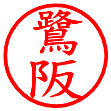 [朱肉の色]を選び、入力窓に“鷺阪”と入力して[生成]ボタンを押すと、印影が更新され、リンクから電子印鑑(デジタル印影)がダウンロードできます。 電子印鑑「鷺阪」の作り方文字表示が変なときや、文字バランスが悪いときは[字形切替]のチェックボックスでON/OFFを切り替え[生成]しなおしてください。 生成される画像は通常の印影「鷺阪.png」と、にじみを表現した少し太めの印影「鷺阪B.png」の背面透過PNG形式2種と、鮮明なPDF形式の印影「鷺阪.pdf」の計3種類です。 朱肉の微妙な色の違いを7色で表現しました。デフォルト(左端)は、JISが定めた朱肉の色のマンセル値(7.5R 5/14)をRGB値(217,66,54)に変換したものになっています。 「電子透かし」にチェックを入れて[生成]ボタンを押すと、タイムスタンプを電子透かしとして埋め込んだセキュアな電子印鑑が作れます。詳細は別ページの「タイムスタンプと電子透かし」でご覧ください。 鷺阪さんの日付印が作れます。「日付スタンプメーカー」は、社内向けの書類に利用されることの多い日付印(データ印)が無料で作れるWebアプリケーションです。中段に日付が入り、上段と下段は、ともに8文字まで文字が入ります。 ![]() 古代文字で落款印が作れます。「落款スタンプメーカー」で作品を引き立たせる落款印が作れます。