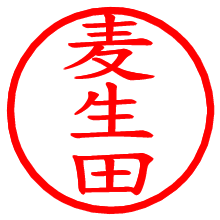 [朱肉の色]を選び、入力窓に“麦生田”と入力して[生成]ボタンを押すと、印影が更新され、リンクから電子印鑑(デジタル印影)がダウンロードできます。 電子印鑑「麦生田」の作り方文字表示が変なときや、文字バランスが悪いときは[字形切替]のチェックボックスでON/OFFを切り替え[生成]しなおしてください。 生成される画像は通常の印影「麦生田.png」と、にじみを表現した少し太めの印影「麦生田B.png」の背面透過PNG形式2種と、鮮明なPDF形式の印影「麦生田.pdf」の計3種類です。 朱肉の微妙な色の違いを7色で表現しました。デフォルト(左端)は、JISが定めた朱肉の色のマンセル値(7.5R 5/14)をRGB値(217,66,54)に変換したものになっています。 「電子透かし」にチェックを入れて[生成]ボタンを押すと、タイムスタンプを透かしとして埋め込んだセキュアな電子印鑑が作れます。詳細は別ページの「電子透かしとタイムスタンプ」でご覧ください。 麦生田さんの日付印が作れます。「日付スタンプメーカー」は、社内向けの書類に利用されることの多い日付印(データ印)が無料で作れるWebアプリケーションです。中段に日付が入り、上段と下段は、ともに8文字まで文字が入ります。 ![]() 古代文字で落款印が作れます。「落款スタンプメーカー」で作品を引き立たせる落款印が作れます。