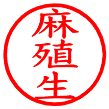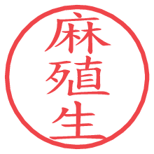 [朱肉の色]を選び、入力窓に“麻殖生”と入力して[生成]ボタンを押すと、印影が更新され、リンクから電子印鑑(デジタル印影)がダウンロードできます。 電子印鑑「麻殖生」の作り方文字表示が変なときや、文字バランスが悪いときは[字形切替]のチェックボックスでON/OFFを切り替え[生成]しなおしてください。 生成される画像は通常の印影「麻殖生.png」と、にじみを表現した少し太めの印影「麻殖生B.png」の背面透過PNG形式2種と、鮮明なPDF形式の印影「麻殖生.pdf」の計3種類です。 朱肉の微妙な色の違いを7色で表現しました。デフォルト(左端)は、JISが定めた朱肉の色のマンセル値(7.5R 5/14)をRGB値(217,66,54)に変換したものになっています。 「電子透かし」にチェックを入れて[生成]ボタンを押すと、タイムスタンプを電子透かしとして埋め込んだセキュアな電子印鑑が作れます。詳細は別ページの「タイムスタンプと電子透かし」でご覧ください。 麻殖生さんの日付印が作れます。「日付スタンプメーカー」は、社内向けの書類に利用されることの多い日付印(データ印)が無料で作れるWebアプリケーションです。中段に日付が入り、上段と下段は、ともに8文字まで文字が入ります。 ![]() 古代文字で落款印が作れます。「落款スタンプメーカー」で作品を引き立たせる落款印が作れます。
