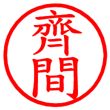 [朱肉の色]を選び、入力窓に“齊間”と入力して[生成]ボタンを押すと、印影が更新され、リンクから電子印鑑(デジタル印影)がダウンロードできます。 電子印鑑「齊間」の作り方文字表示が変なときや、文字バランスが悪いときは[字形切替]のチェックボックスでON/OFFを切り替え[生成]しなおしてください。 生成される画像は通常の印影「齊間.png」と、にじみを表現した少し太めの印影「齊間B.png」の背面透過PNG形式2種と、鮮明なPDF形式の印影「齊間.pdf」の計3種類です。 朱肉の微妙な色の違いを7色で表現しました。デフォルト(左端)は、JISが定めた朱肉の色のマンセル値(7.5R 5/14)をRGB値(217,66,54)に変換したものになっています。 「電子透かし」にチェックを入れて[生成]ボタンを押すと、タイムスタンプを電子透かしとして埋め込んだセキュアな電子印鑑が作れます。詳細は別ページの「タイムスタンプと電子透かし」でご覧ください。 齊間さんの日付印が作れます。「日付スタンプメーカー」は、社内向けの書類に利用されることの多い日付印(データ印)が無料で作れるWebアプリケーションです。中段に日付が入り、上段と下段は、ともに8文字まで文字が入ります。 ![]() 古代文字で落款印が作れます。「落款スタンプメーカー」で作品を引き立たせる落款印が作れます。