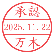 オプションの「電子透かし」をチェックし[生成]すると、見た目には分からないように、UNIXタイムスタンプを識別情報としてPNG形式の日付印に埋め込みます。 日付スタンプメーカーの使い方「部署」「名前」は最大8文字まで入力が可能です。「スタンプの色」を選択し、[生成]ボタン押下で印影画像が更新され、背景を透明に設定したPNG形式とPDF形式の印影画像がリンクからダウンロードできます。 オプションの「電子透かし」は、その性格上日付印ととても相性の良い付加サービスです。 別ページの「タイムスタンプと電子透かし」でも詳しく解説しますが、このオプションを追加することで、日付印が生成された日時に確かにその印が存在していることが証明されます。 ![]() 万木さんの電子印鑑が作れます。社内でのデータ書類閲覧確認用など、認印的な使い方のできる電子印鑑が作れます。 ![]() 古代文字で落款印が作れます。「落款スタンプメーカー」で作品を引き立たせる落款印が作れます。