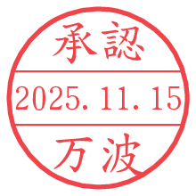 オプションの「電子透かし」をチェックし[生成]すると、見た目には分からないように、UNIXタイムスタンプを識別情報としてPNG形式の日付印に埋め込みます。 日付スタンプメーカーの使い方「部署」「名前」は最大8文字まで入力が可能です。「スタンプの色」を選択し、[生成]ボタン押下で印影画像が更新され、背景を透明に設定したPNG形式とPDF形式の印影画像がリンクからダウンロードできます。 オプションの「電子透かし」は、その性格上日付印ととても相性の良い付加サービスです。 別ページの「タイムスタンプと電子透かし」でも詳しく解説しますが、このオプションを追加することで、日付印が生成された日時に確かにその印が存在していることが証明されます。 ![]() 万波さんの電子印鑑が作れます。社内でのデータ書類閲覧確認用など、認印的な使い方のできる電子印鑑が作れます。 ![]() 古代文字で落款印が作れます。「落款スタンプメーカー」で作品を引き立たせる落款印が作れます。