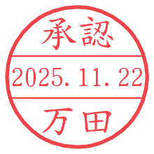 オプションの「電子透かし」をチェックし[生成]すると、見た目には分からないように、UNIXタイムスタンプを識別情報としてPNG形式の日付印に埋め込みます。 日付スタンプメーカーの使い方「部署」「名前」は最大8文字まで入力が可能です。「スタンプの色」を選択し、[生成]ボタン押下で印影画像が更新され、背景を透明に設定したPNG形式とPDF形式の印影画像がリンクからダウンロードできます。 オプションの「電子透かし」は、その性格上日付印ととても相性の良い付加サービスです。 別ページの「タイムスタンプと電子透かし」でも詳しく解説しますが、このオプションを追加することで、日付印が生成された日時に確かにその印が存在していることが証明されます。 ![]() 万田さんの電子印鑑が作れます。社内でのデータ書類閲覧確認用など、認印的な使い方のできる電子印鑑が作れます。 ![]() 古代文字で落款印が作れます。「落款スタンプメーカー」で作品を引き立たせる落款印が作れます。