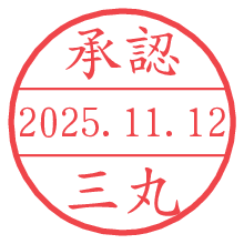 オプションの「電子透かし」をチェックし[生成]すると、見た目には分からないように、UNIXタイムスタンプを識別情報としてPNG形式の日付印に埋め込みます。 日付スタンプメーカーの使い方「部署」「名前」は最大8文字まで入力が可能です。「スタンプの色」を選択し、[生成]ボタン押下で印影画像が更新され、背景を透明に設定したPNG形式とPDF形式の印影画像がリンクからダウンロードできます。 オプションの「電子透かし」は、その性格上日付印ととても相性の良い付加サービスです。 別ページの「タイムスタンプと電子透かし」でも詳しく解説しますが、このオプションを追加することで、日付印が生成された日時に確かにその印が存在していることが証明されます。 ![]() 三丸さんの電子印鑑が作れます。社内でのデータ書類閲覧確認用など、認印的な使い方のできる電子印鑑が作れます。 ![]() 古代文字で落款印が作れます。「落款スタンプメーカー」で作品を引き立たせる落款印が作れます。