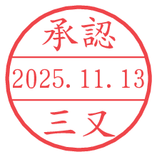 オプションの「電子透かし」をチェックし[生成]すると、見た目には分からないように、UNIXタイムスタンプを識別情報としてPNG形式の日付印に埋め込みます。 日付スタンプメーカーの使い方「部署」「名前」は最大8文字まで入力が可能です。「スタンプの色」を選択し、[生成]ボタン押下で印影画像が更新され、背景を透明に設定したPNG形式とPDF形式の印影画像がリンクからダウンロードできます。 オプションの「電子透かし」は、その性格上日付印ととても相性の良い付加サービスです。 別ページの「タイムスタンプと電子透かし」でも詳しく解説しますが、このオプションを追加することで、日付印が生成された日時に確かにその印が存在していることが証明されます。 ![]() 三又さんの電子印鑑が作れます。社内でのデータ書類閲覧確認用など、認印的な使い方のできる電子印鑑が作れます。 ![]() 古代文字で落款印が作れます。「落款スタンプメーカー」で作品を引き立たせる落款印が作れます。