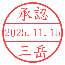 オプションの「電子透かし」をチェックし[生成]すると、見た目には分からないように、UNIXタイムスタンプを識別情報としてPNG形式の日付印に埋め込みます。 日付スタンプメーカーの使い方「部署」「名前」は最大8文字まで入力が可能です。「スタンプの色」を選択し、[生成]ボタン押下で印影画像が更新され、背景を透明に設定したPNG形式とPDF形式の印影画像がリンクからダウンロードできます。 オプションの「電子透かし」は、その性格上日付印ととても相性の良い付加サービスです。 別ページの「タイムスタンプと電子透かし」でも詳しく解説しますが、このオプションを追加することで、日付印が生成された日時に確かにその印が存在していることが証明されます。 ![]() 三岳さんの電子印鑑が作れます。社内でのデータ書類閲覧確認用など、認印的な使い方のできる電子印鑑が作れます。 ![]() 古代文字で落款印が作れます。「落款スタンプメーカー」で作品を引き立たせる落款印が作れます。